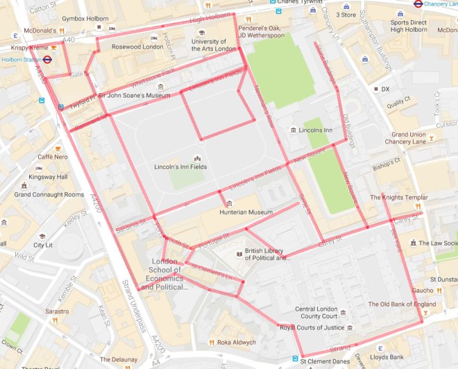 Day 32 – Royal Courts of Justice – Kingsway – Lincoln’s Inn Fields –