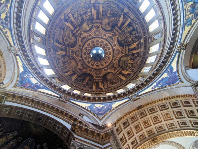 Previous ImageNext Image IMG_20170614_132140 Scenes from the life of St Paul by Sir James Thornhill on inside of the dome